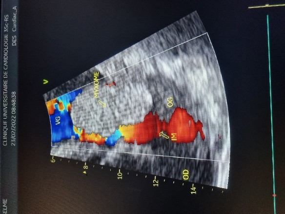 L’examen physique retrouvait un souffle d’insuffisance mitrale d’intensité 3/6ème sans signe d’insuffisance cardiaque.