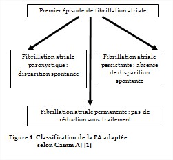 La FA a une présentation clinique très hétérogène. Les accès de FA peuvent être définis en termes de nombre, de durée, de fréquence, de mode de début, de facteurs déclenchant et de réponse au traitement. Selon le mode évolutif, il peut s’agir soit du premier épisode détecté, soit d’une FA récidivante. La fibrillation atriale est classée en plusieurs types