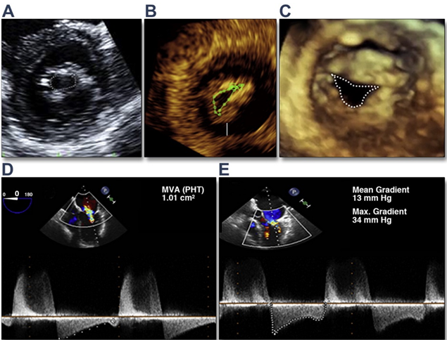 Figure 1 : Mesures échographiques de la surface mitrale et du gradient Trans mitral