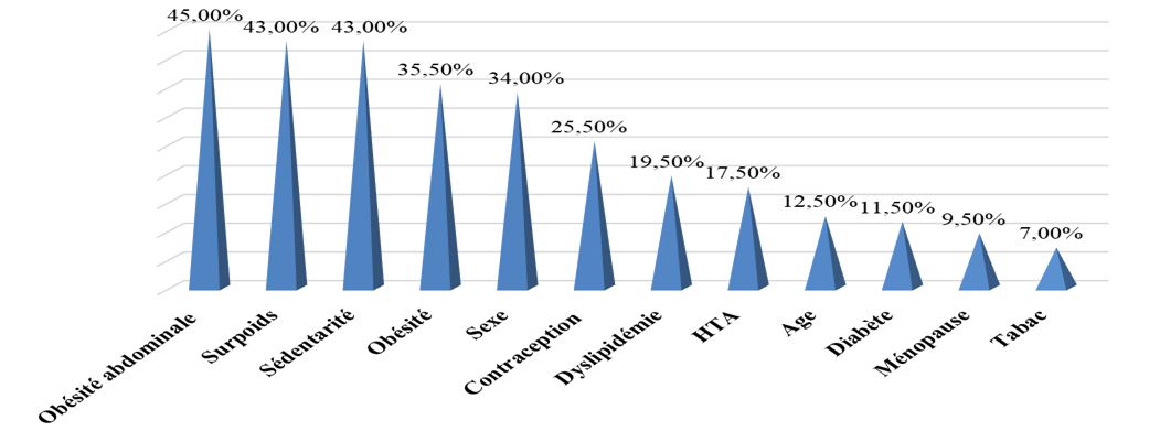 Results:   We collected data from 200 patients, 66% of whom were women. The average age was 42.9±8.68. 99% of respondents had at least one FDRCVX. Notification of FDRCVX was found in 57% of cases. High blood pressure was found in 17.50%, type II diabetes in 11.5%, dyslipidemia in 19.5%, moderate obesity in 35.50%, overweight in 43%, abdominal obesity in 45% of cases (significantly more frequent in women, 33.5%), active smoking in 7%, sedentary lifestyle in 43% and alcoholism in 3.5%.