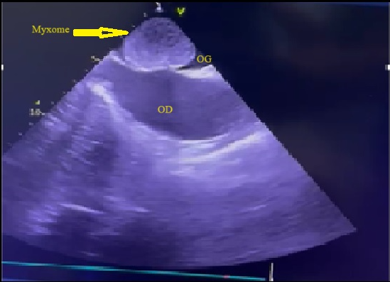Le myxome est une tumeur de nature polypeuse à développement intra cavitaire qui se développe à partir des restes de tissu mésenchymateux embryonnaire. Ceci se fait le plus souvent au niveau du septum inter atrial expliquant la nette prédominance des myxomes de l’oreillette gauche (1).